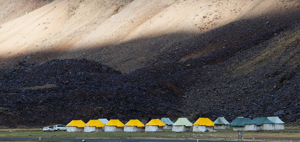 Relish breakfast at the hotel, and then set out on a scenic drive towards Pangong Tso – a high altitude saltwater lake. The blue skies and the barren mountains are reflected beautifully in it. On reaching the area, transfer to the campsite and spend the rest of the day exploring the surroundings. End the experience with an amazing overnight stay in tents.