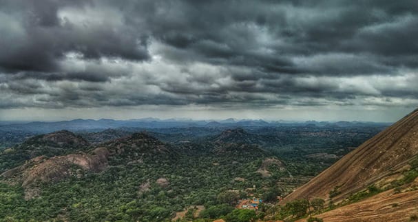Makalidurga is a perfect weekend destination from Bangalore as it is only 55 kms on the outskirts of the metropolitan city. It is a picturesque hill surrounded by a scenic lake which appears to be in the shape of South American continent. There lies a fort atop the Makalidurga hill and a railway track follows just at the base of the hill which makes the trek route highly scenic. The ideal way for all trekkers to start the trek is from Makalidurga railway station which adds a vintage style to the trekking activity. The whole trail is covered by dense grassland which grows so tall that at times it hides the trail leading up to the hill. Makalidurga hill is famous for spectacular views of sunrise and sunsets. The area of the Hill top is seen to be divided into three parts - the center where in a Shiva temple is located, Western side from where the beautiful lake can be observed and lastly the eastern side from where one can see the beauty of the unveiled sun.