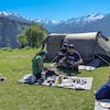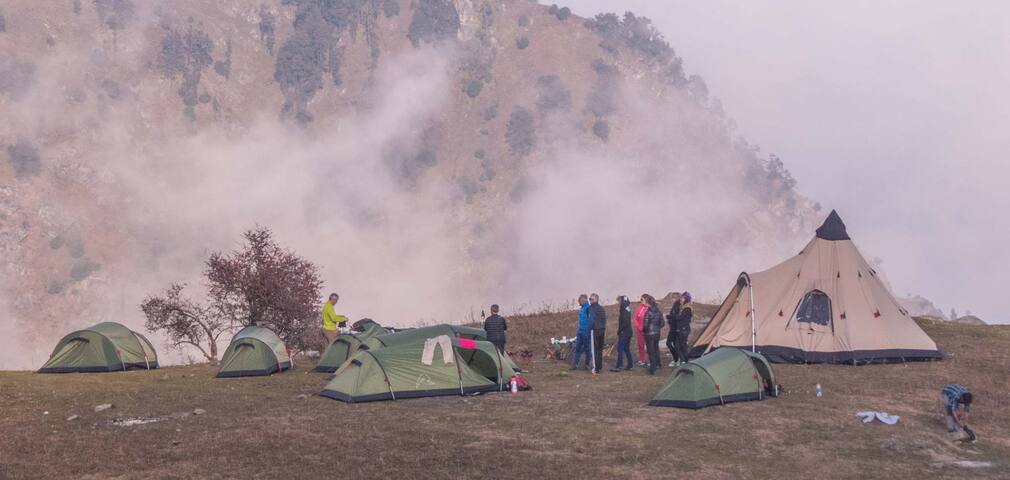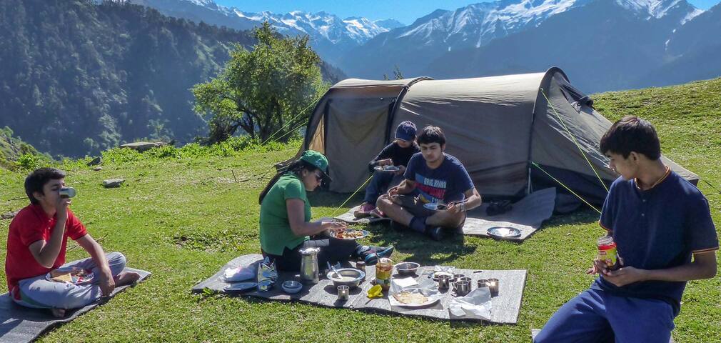 An hour-long hike from Lakcha brings you to Rangthar, the campsite for the night. From here, capture panoramic vistas of the snow-capped peaks of the Himalayas, and the Tirthan Valley. Enjoy overnight stay in your comfortable camp near a bonfire.